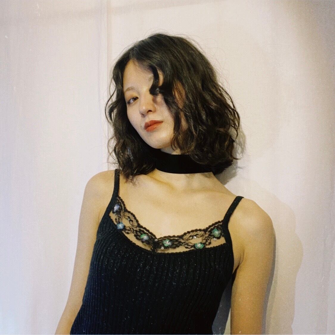 布地にラメがあしらわれたコンパクトデザインのリブニットキャミソール。