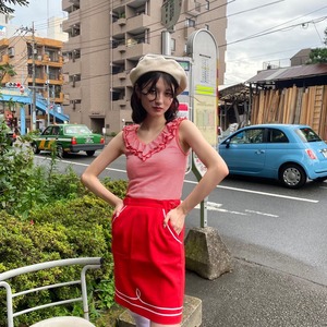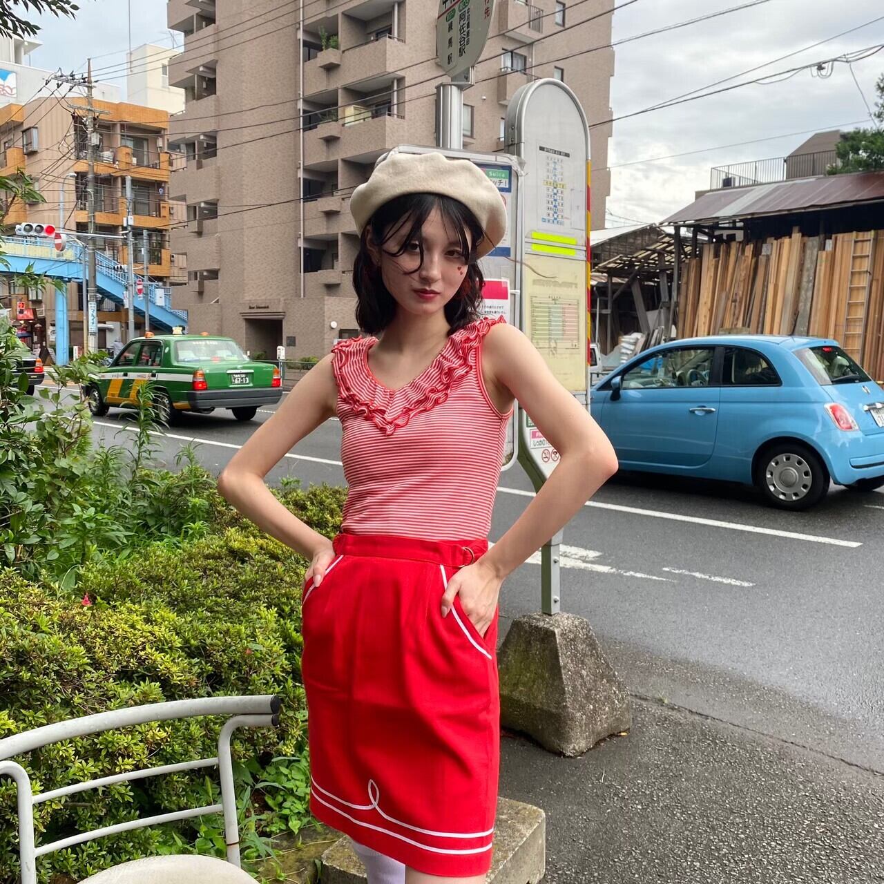デニムはもちろん、可愛らしいアイテムなのでマニッシュなボトムに合わせるスタイリングもおすすめ。