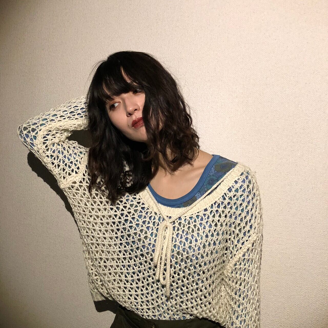 表情感のあるざっくりとしたメッシュ編みがポイントのニット。