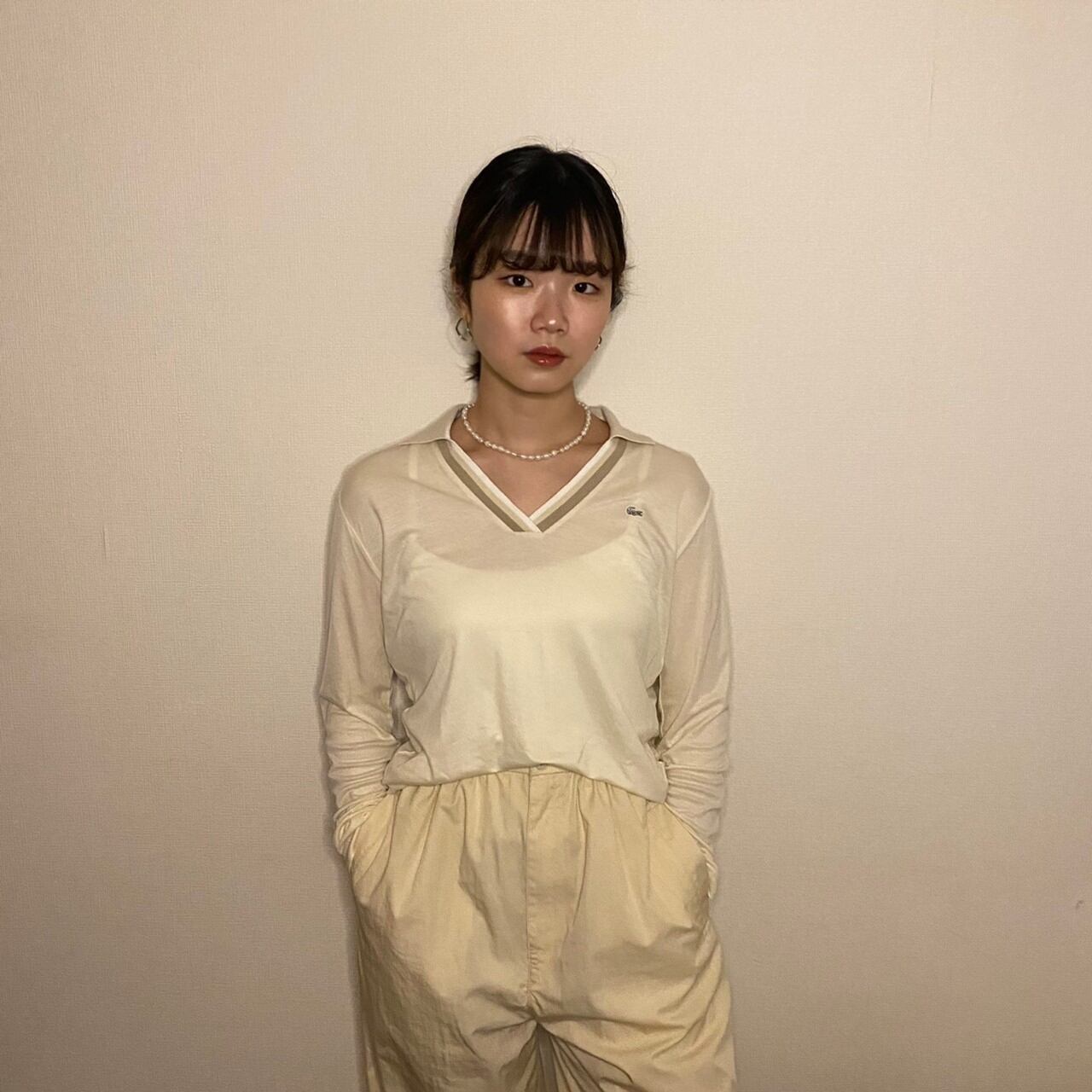 シンプルながら、ラインの入ったスキッパーネックと胸元に入ったラコステの刺繍がポイントのアイテム。